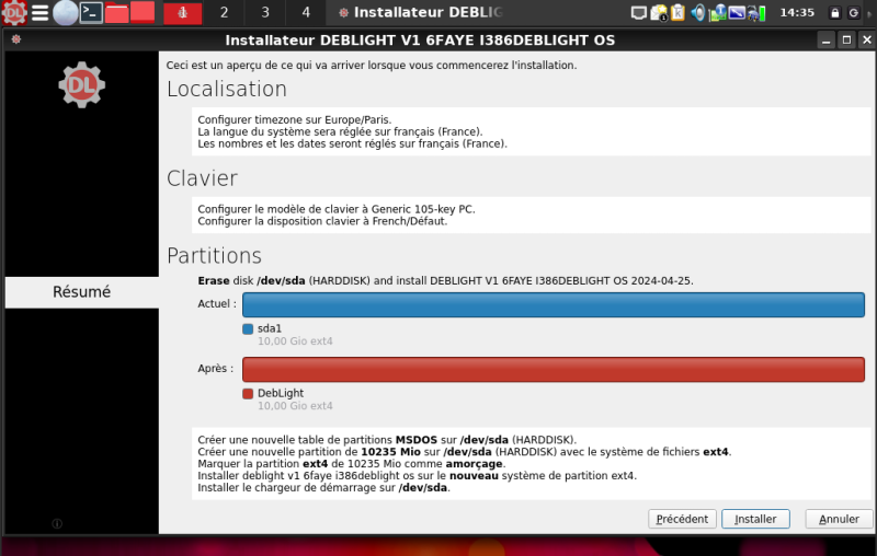 Maintenant vous avez 2 possibilité si vous souhaitez installer DebLight OS sur le disque en entier :