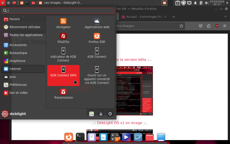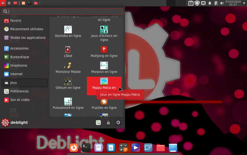 Le menu avec des icônes surnommé : Menu DebLight |