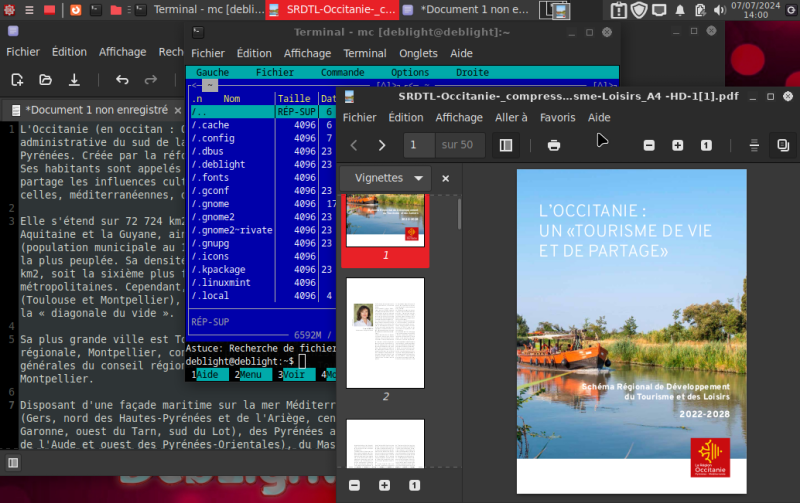 Terminal, PCManFM, Xreader (visionneuse PDF)