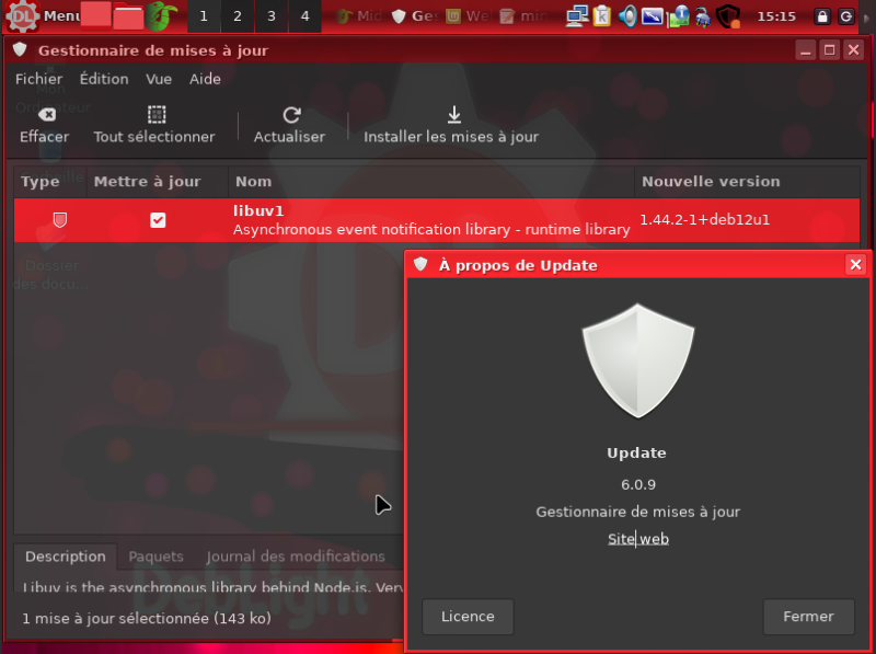 Le gestionnaire de mises à jour 1/3 Mise à jour disponible |