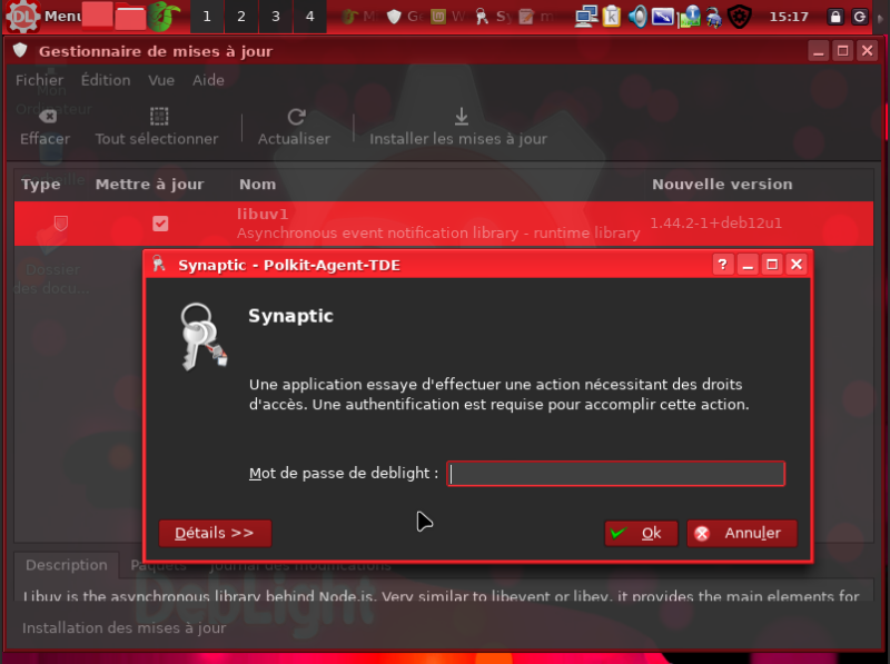L'identification à Synaptic pour applis, etc