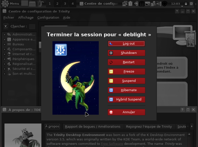 La déconnexion (bug FR rapporté à TDE) |